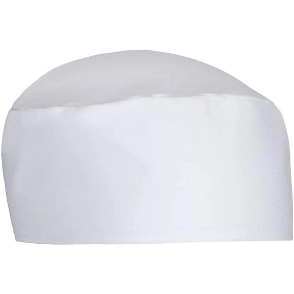 Toque de chef, lavable à 95°C, anti-pli, Finition soignée, Hauteur 7cm. Fabriqué en Allemagne. Composition: 65% Polyester / 35% Coton. Grammage : 215g/m²