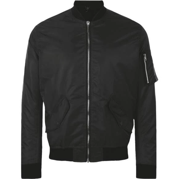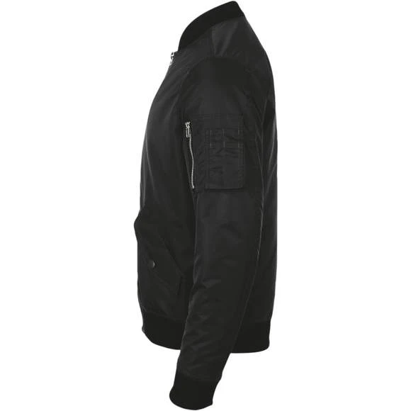 Bombers unisexe fashion. Ouverture zippée. Finition bord côte col, poignets et bas de vêtement. 2 poches à rabat pressionné. 1 poche manche zippée. Doublure ton sur ton. 100% nylon. Grammage : 60g/m²
