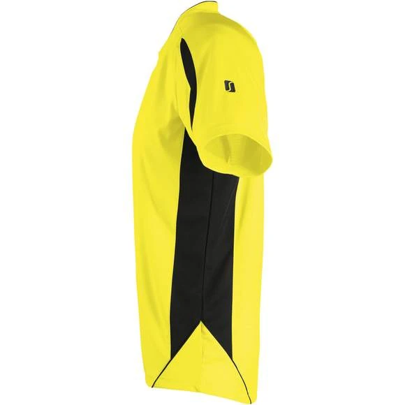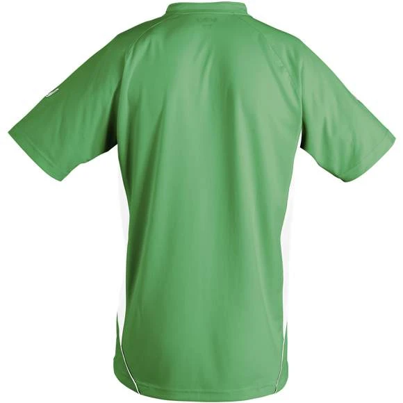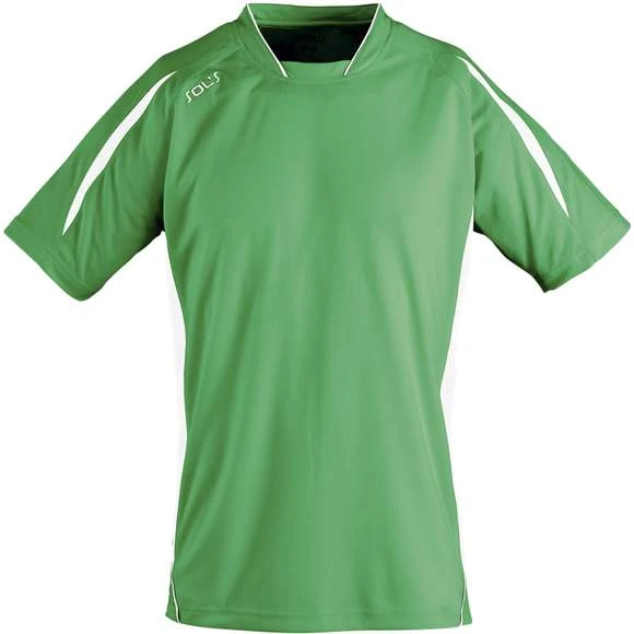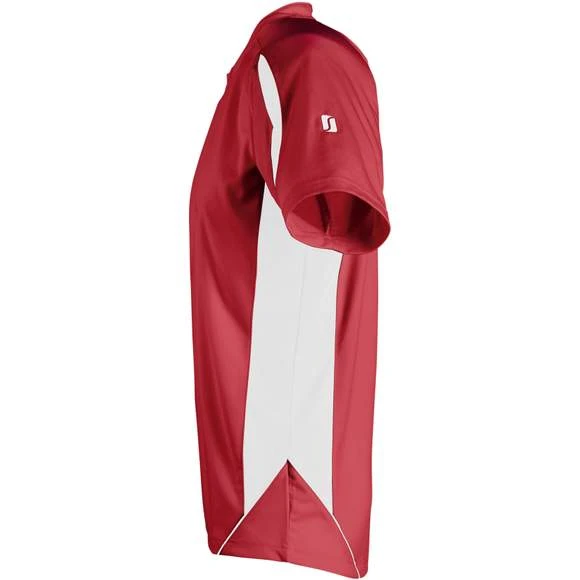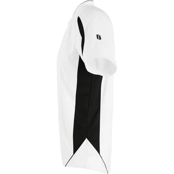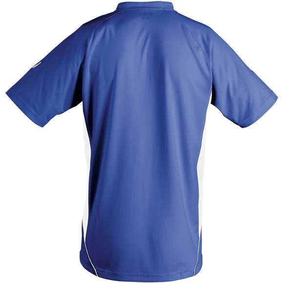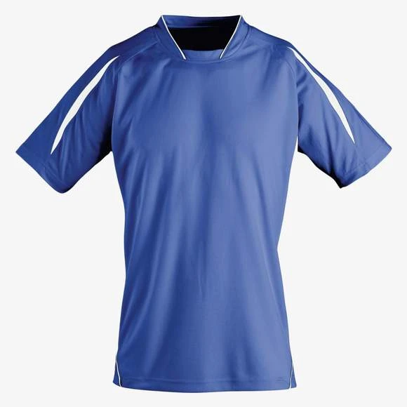 Maillot travaillé enfant manches courtes. Col fantaisie fermé avec liseré contrasté. Manches raglan. Empiècements en mesh sur les côtés et respirants sur les manches, garantissant une régulation de la transpiration. Pan arrière arrondi et légèrement rallongé. Finitions renforcées. Logo brodé contrasté. 100% polyester interlock. Grammage : 140g/m²