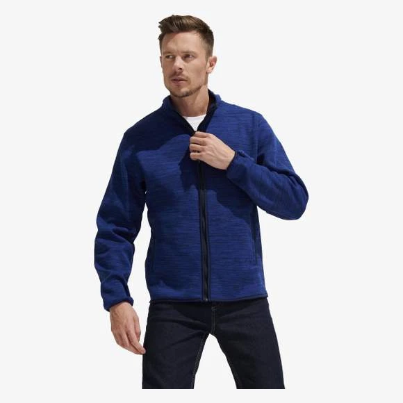 Veste polaire tricot. Veste zippée, effet mouliné. 2 poches. Col rond. Elastique contrasté sur les manches et le bas du vêtement. 100% polyester. Grammage : 340g/m²