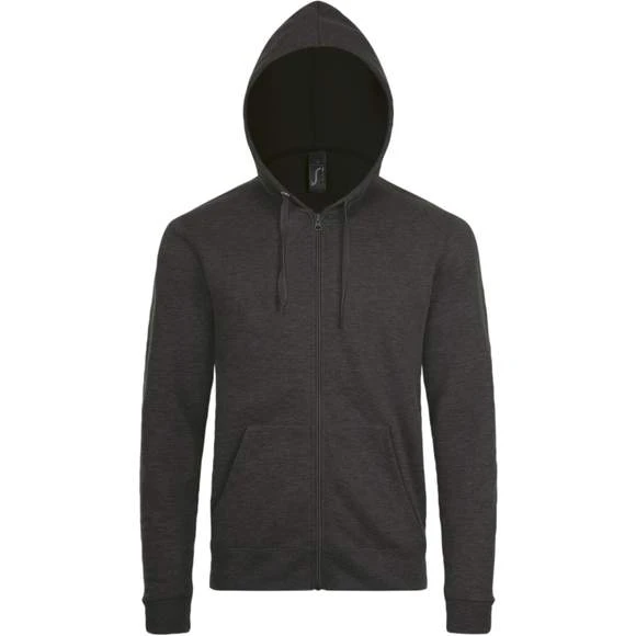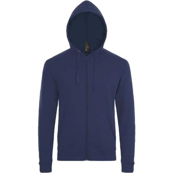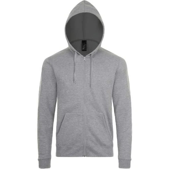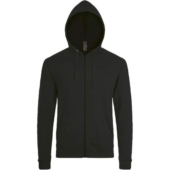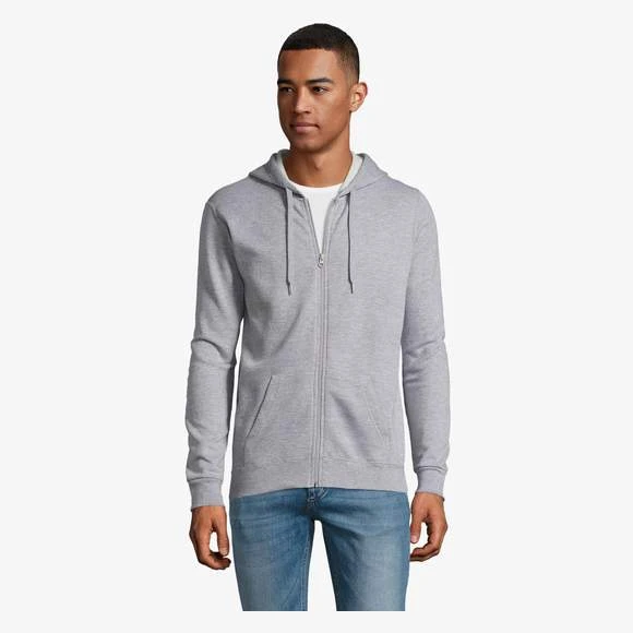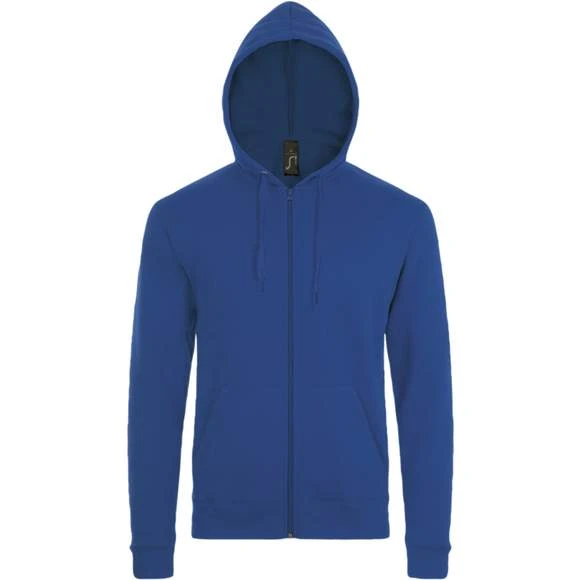 Veste zippée à capuche unisexe. Manches montées. 2 poches kangourou. Capuche avec cordon de serrage ton sur ton. Coupe droite. Coupé cousu. Molleton gratté. 50% coton 50% polyester. Grammage : 260g/m²