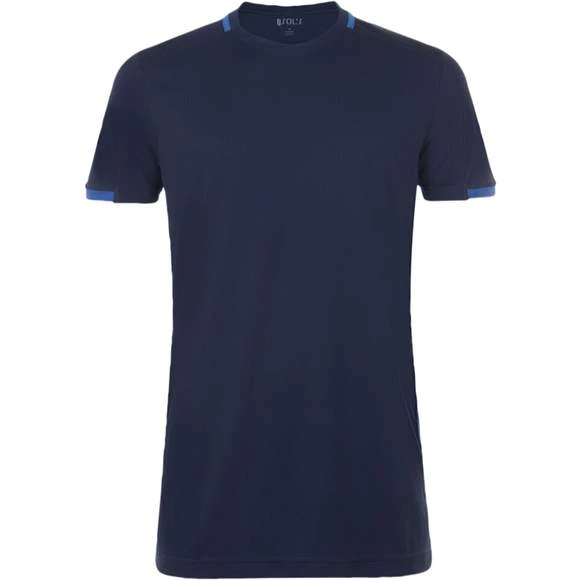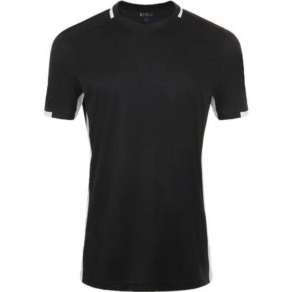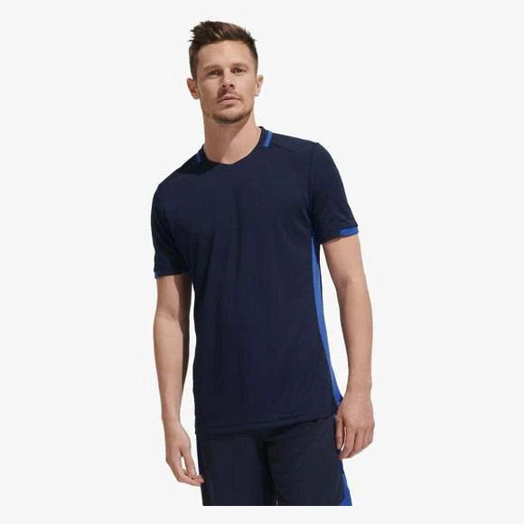 Maillot adulte contrasté. Col V avec liseré contrasté. Empiècements en mesh contrastés sur les côtés. 100% polyester effet respirant. Grammage : 150g/m²