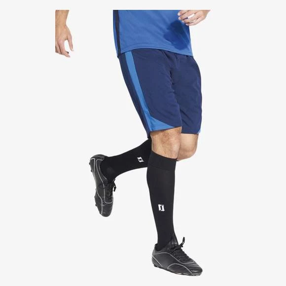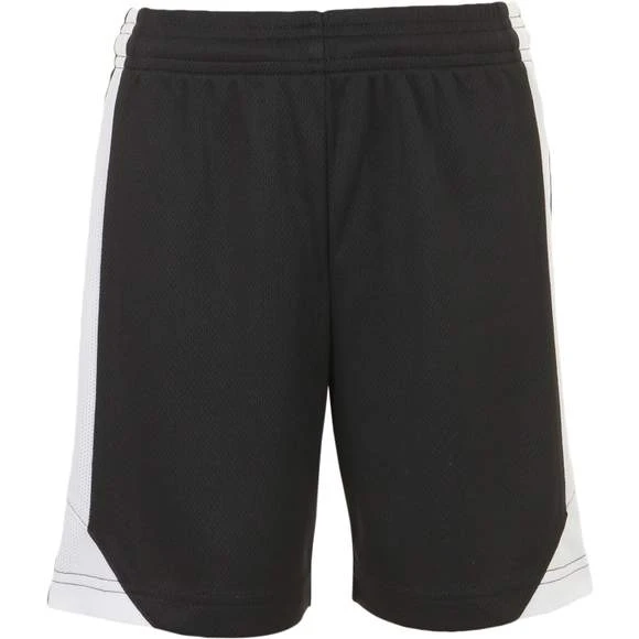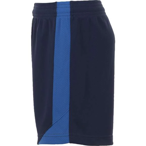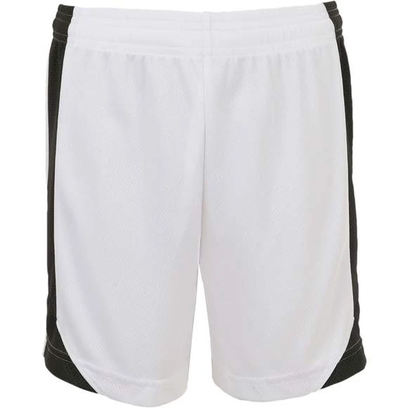 Short adulte contrasté. Ceinture élastiquée avec cordon de serrage. Empiècements en mesh contrastés sur les côtés. 100% polyester effet respirant. Grammage : 150g/m²