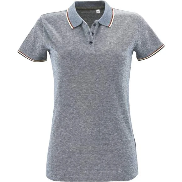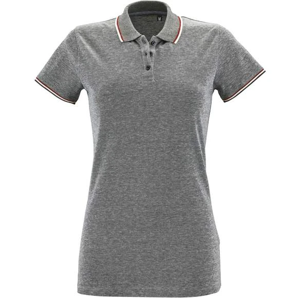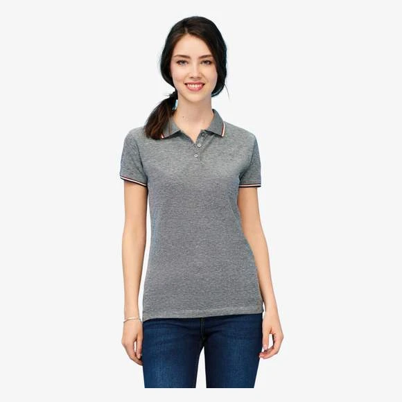 Polo chiné femme, maille piquée 180g/m². 60% coton – 40% polyester. Grammage : 180g/m²