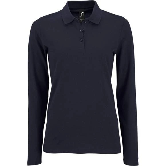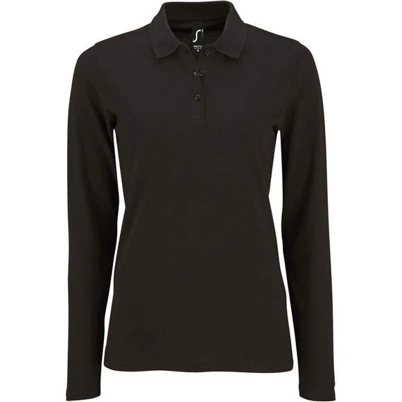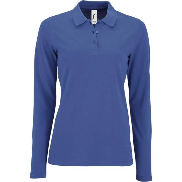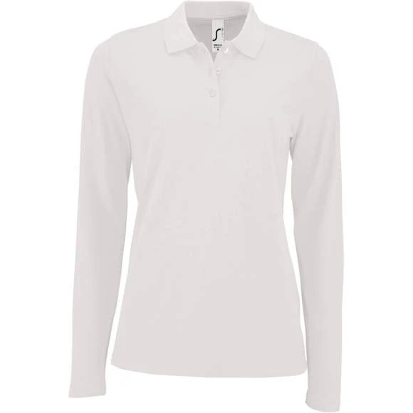 Polo piqué manches longues femme, maille piquée 180g/m². 100% coton peigné. Col en côte 1X1. Grammage : 180g/m²