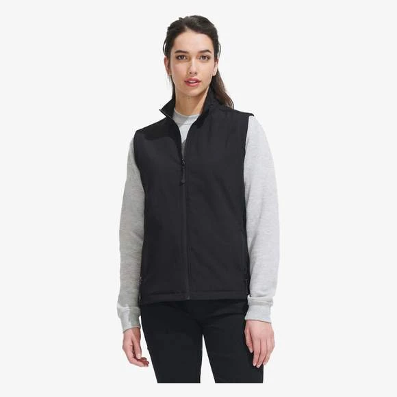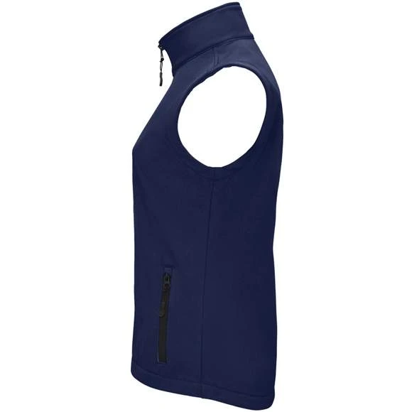 Softshell femme sans manches. 96% polyester – 4% élasthanne. 2 couches. Intérieur polaire 100% polyester 2 poches zippées. Grammage : 280g/m²