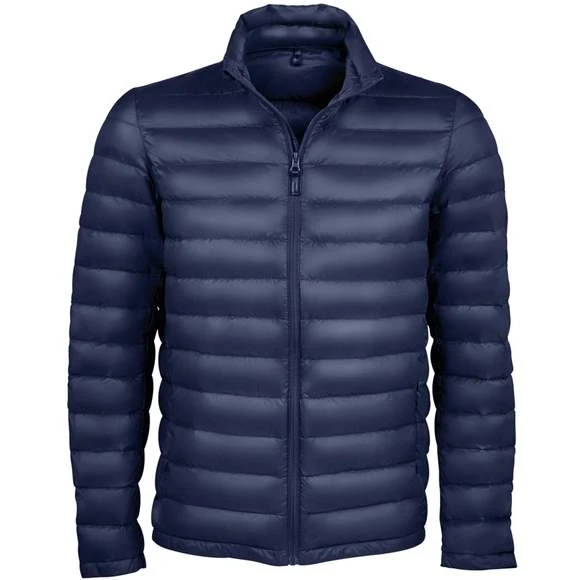 Doudoune ultra light homme. NYLON 380T. Tissu extérieur et doublure 100% polyamide. Matelassage 90% duvet, 10% plumes Ouverture zippée. 2 poches devant zippées. 2 poches intérieures. Petit col montant. Coupe près du corps. Système de pliage « in bag » avec stoppeurs. Grammage : 380g/m²
