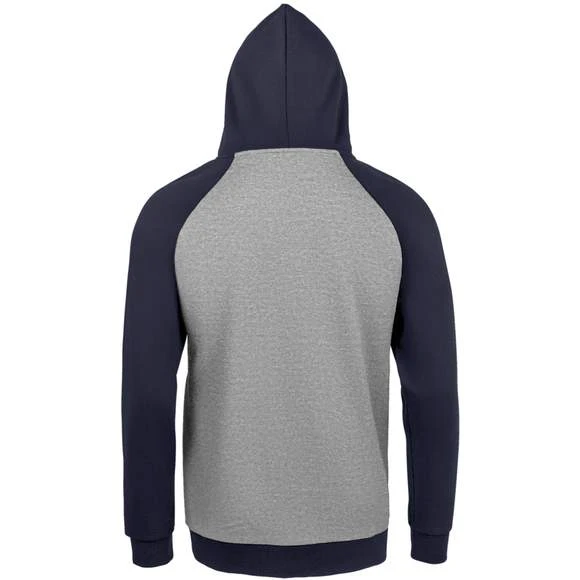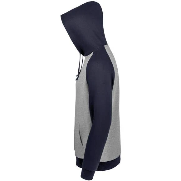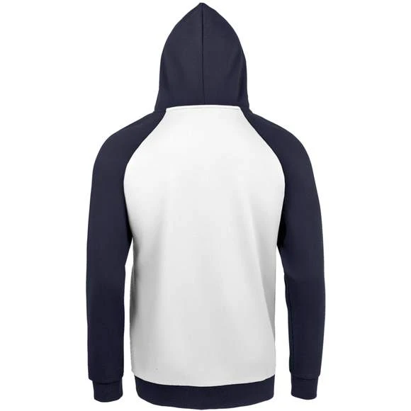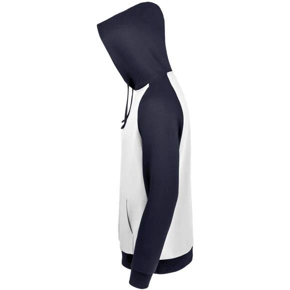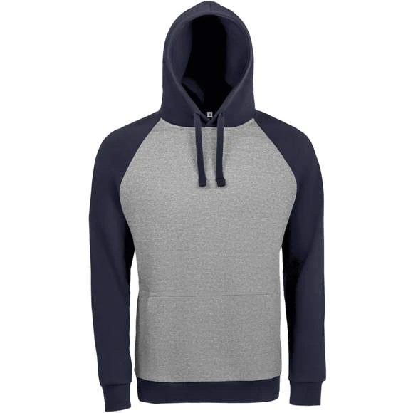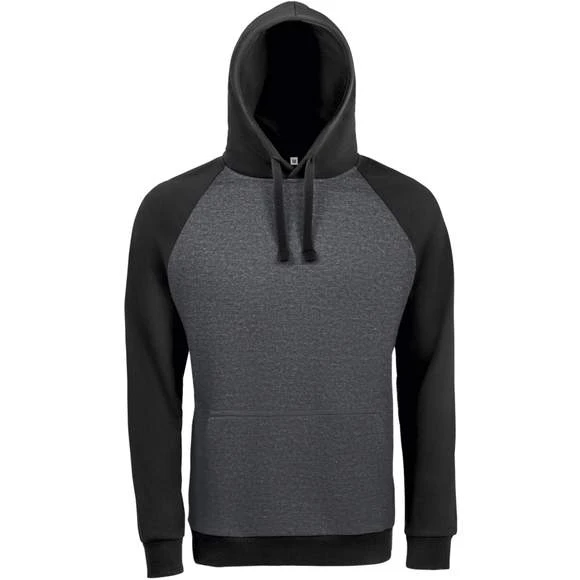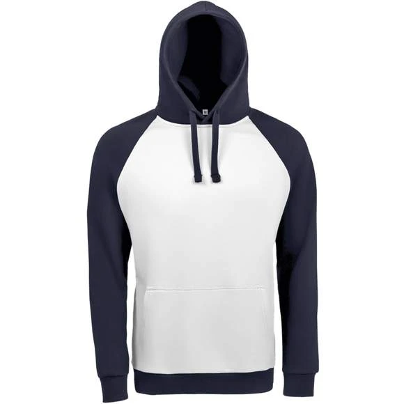 Sweat-shirt unisexe bicolore. MOLLETON 280 TECHNOLOGIE LSF (Low Shrinkage Fabric). 80% coton Ringspun – 20% polyester. Intérieur gratté. Extérieur 100% coton Bicolore. Manches raglan. Poche kangourou. Poignets et bas en bord côte. Capuche doublée, réglable avec cordon de serrage. Bande de propreté intérieur col. Grammage : 280g/m²