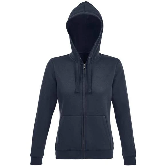 Veste zippĂ©e femme Ă capuche. Manches montĂ©es. 2 poches kangourou, coupĂ© cousu. Capuche doublĂ©e avec cordon de serrage ton sur ton. Poignets et bas en bord cĂ´te 2×2. Demi-lune Ă l’intĂ©rieur du col. Bande de propretĂ© intĂ©rieur col. 80% coton Ringspun 20% polyester. IntĂ©rieur grattĂ©. ExtĂ©rieur 100% coton. Grammage : 280g/m²