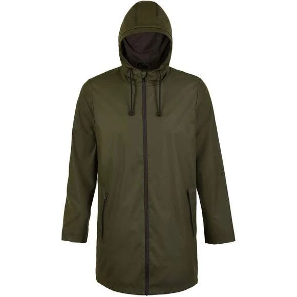 Ciré Waterproof pour homme. Ouverture par zip étanche, capuche et cordon de serrage. 2 poches avec fermeture à glissière, dos finition queue de pie. Les coutures ont été thermosoudées. Matière composée à 100% de polyester. Enduction PU sur la surface. 5000mm Waterproof. Doublure 100% polyester 210 taffetas, doublure capuche jersey 80% polyester, 20% coton. Grammage : 210g/m²