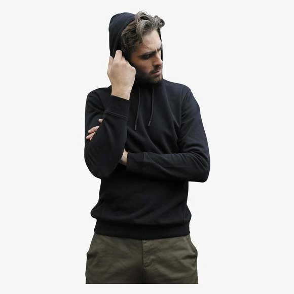 Sweat-shirt à capuche pour homme. Modèle avec poche kangourou, capuche et cordons de serrage. Oeillets et embouts assortis à la couleur du textile. Doublure en Jersey. Finitions en bord-côte 2×2 au niveau des poignets et de la base. Demi lune et bande de propreté à l’interieur du col. Matière French Terry. Composition 85% coton peigné et 15% polyester. Grammage : 400g/m²
