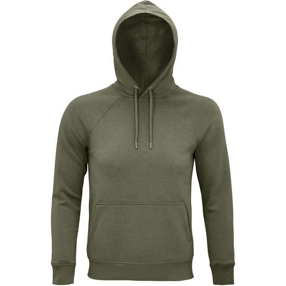 Sweat capuche unisexe molleton grattĂ©. 80% coton issu de l’agriculture biologique – 20% polyester recyclĂ© 3 fils. Grammage : 280g/m²