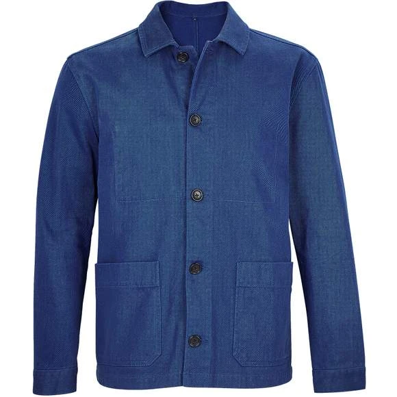 Bleu de travail unisexe. Unisexe Ouverture boutonnée. Poches latérales plaquées. Poignets boutonnés. Poche poitrine intérieure. Poche latérale intérieure avec fermeture auto-agrippante. Coupe confortable. Composition : Tissu 100% coton issu de l’agriculture biologique. Grammage : 385g/m²