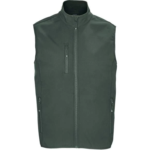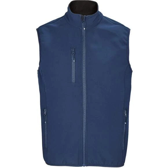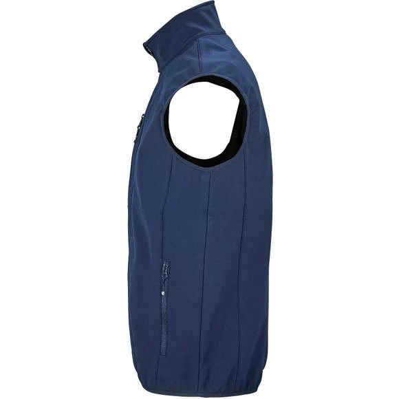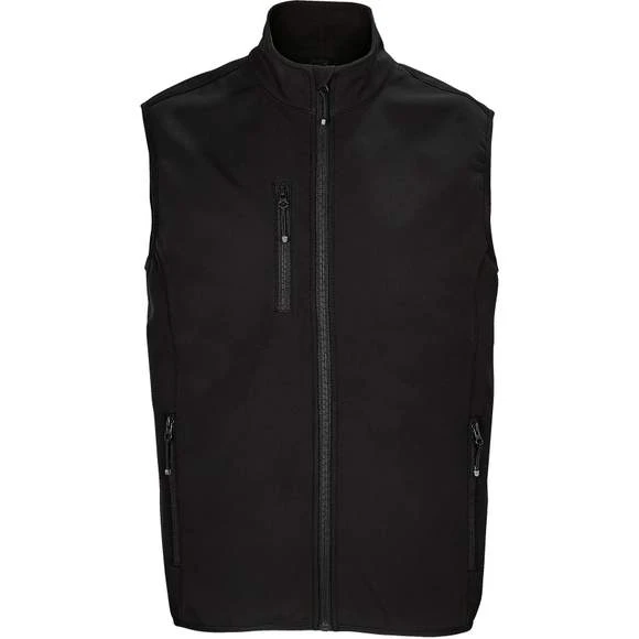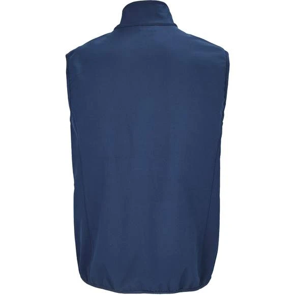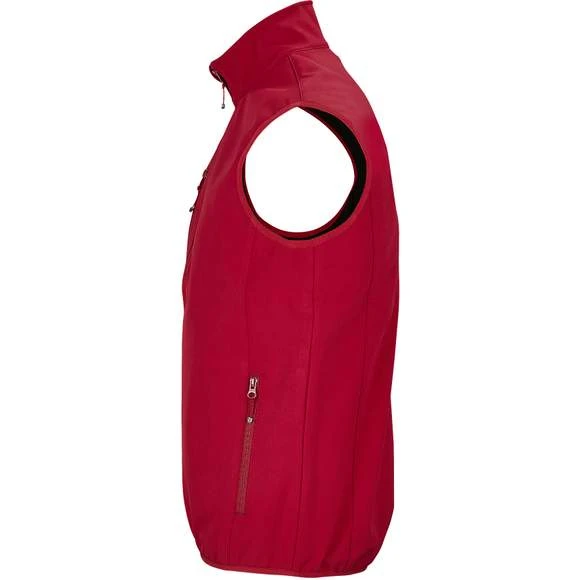 Veste pour homme zippée sofshell sans manche. Ouverture zippée. 2 poches latérales et 1 poche poitrine zippées. Tire-zips contrastés. Biais élastique aux emmanchures et bas du corps. Composition : 94% polyester recyclé – 6% élasthanne. 3 couches. Intérieur polaire : 100% polyester. Membrane 5000 mm imperméable et respirante. Grammage : 270g/m²
