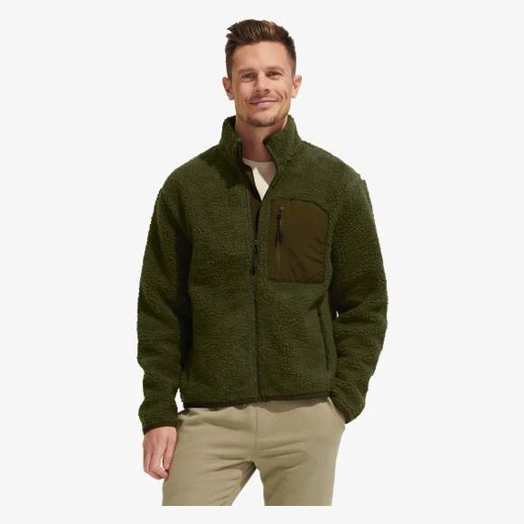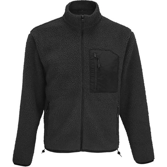 Blouson Sherpa unisexe. Ouverture principale et poches latérales avec zip inversé contrasté en nylon. Poche poitrine contrastée en taslon avec zip inversé en nylon; Biais bas de manches et bas du corps contrastés en taslon. Tire-zip noirs avec détails réflectifs