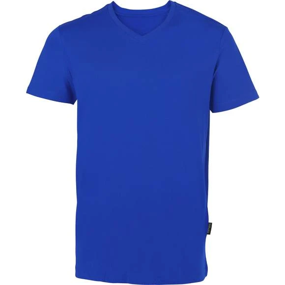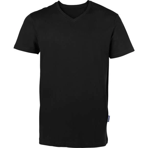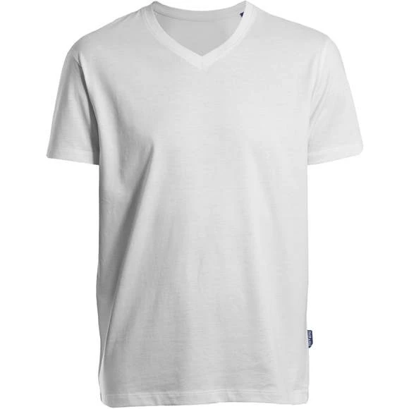Coton peigné et filé à l’anneau (jersey simple). Col V. Coupe étroite moderne tendance. Couture latérale. Tour de cou d’épaule à épaule, renforcé par des coutures doubles. Sans étiquette. Étiquette en tissu Fair4All dans la couture de gauche. Prétraité contre le rétrécissement et les bouloches. Lavable à 60 °C et adapté au lavage industriel. Production certifiée BSCI. Composition : 100% coton (Grey Melange : 90% coton / 10% viscose) Grammage : 150g/m²