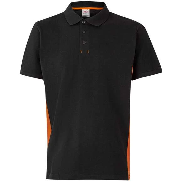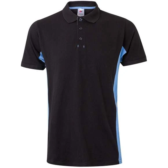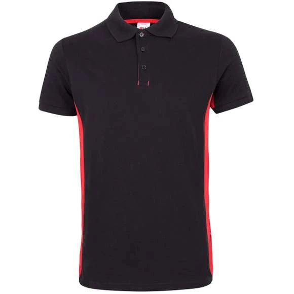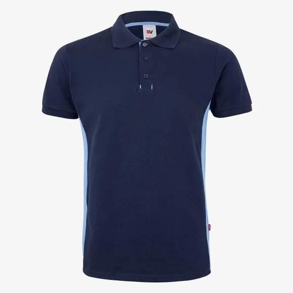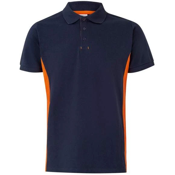 Polo homme. Maille piquée. Plaquette 3 boutons ton sur ton. Intérieure de la plaquette contrasté. Col et emmanchures en bords côte. Panneaux contrastés sur les côtés. Bande de propreté contrastée. Vendu avec poche non cousue. 60% coton/40% polyester