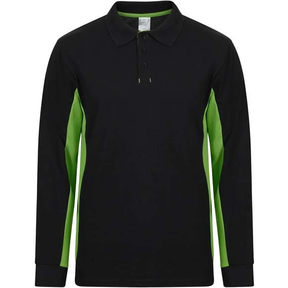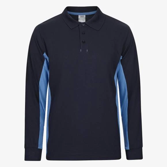 Polo homme. Maille piquée. Plaquette 3 boutons ton sur ton. Intérieure de la plaquette contrasté. Col et poignets en bords côte. Panneaux contrastés sur les côtés et sous les manches. Bande de propreté contrastée. 60% coton/40% polyester