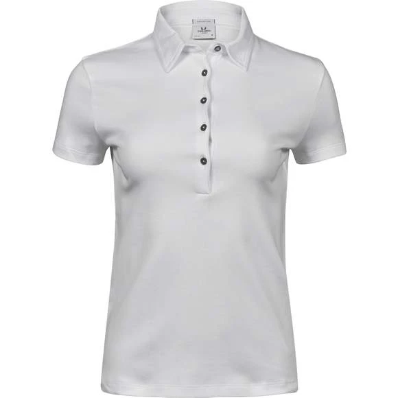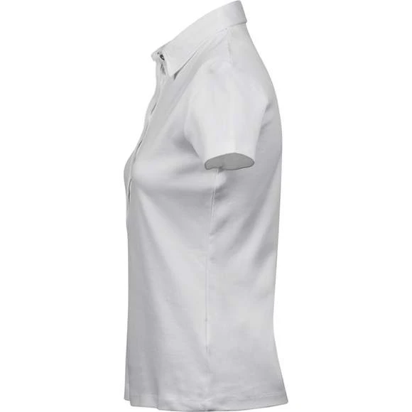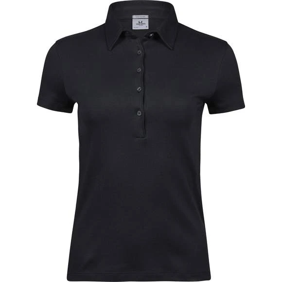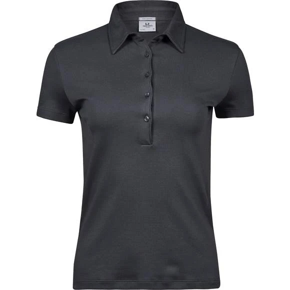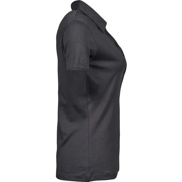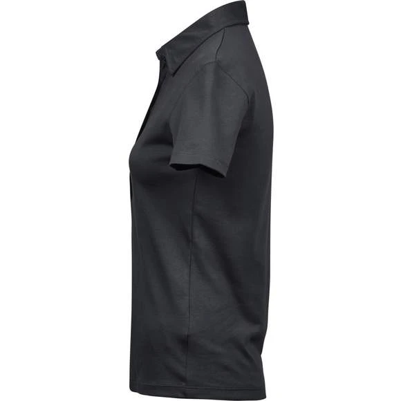 Polo coton Pima femme. Maille piquée. Coupe ajustée. Plaquette 5 bouton anthracite perle (imitation). Col en coton. Renforts d’épaule. Pré-rétréci 2 fois. Lavé aux enzymes pour un toucher plus doux. Composition : 100% coton peigné Ringspun Pima. Grammage : 220g/m²