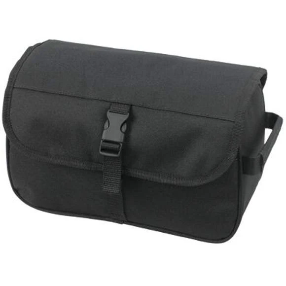 Trousse de toilette avec compartiment principal rembourré. Trois poches zippées. Poignée latérale. Dimensions : L : 27 , H : 16 , P : 12 cm. Polyester 600D.
