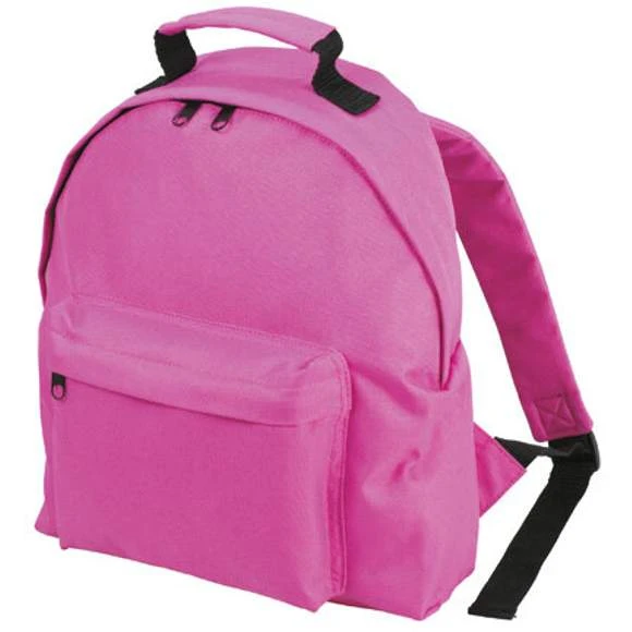 Sac à dos pour enfant , Compartiment principal et poche avant avec fermeture zip. Bandoulières matelassées et ajustables. Polyester 600D. Dimensions : L : 25 , H : 30 , P : 10/13 cm.