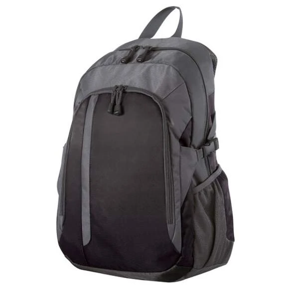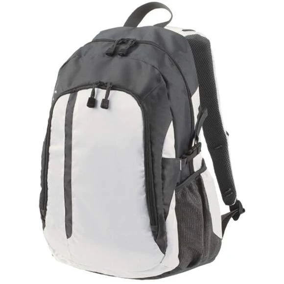 Sac Ă dos avec poches latĂ©rales en filet , grande poche zippĂ©e Ă l’avant , bandoulières matelassĂ©es. Nylon 420D et Jacquard. Dimensions : L : 31 , H : 48 , P : 16 cm.
