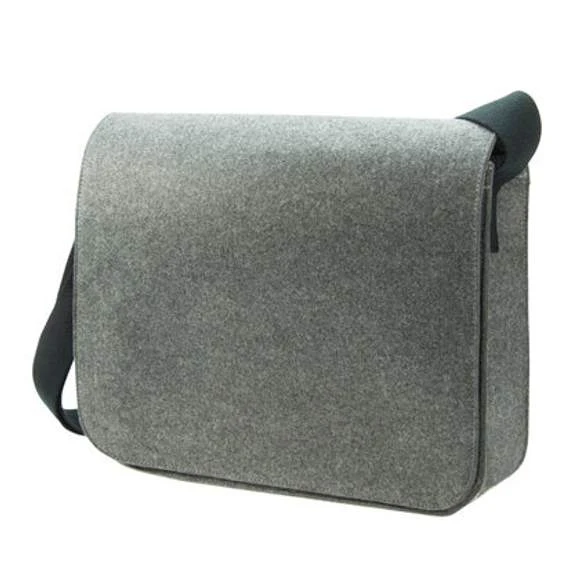 Sacoche en feutrine , compartiment principal avec organisateur. Large rabat , fermetur bande auto-agrippante. Dimensions : L : 36 , H : 29 , P : 10 cm.