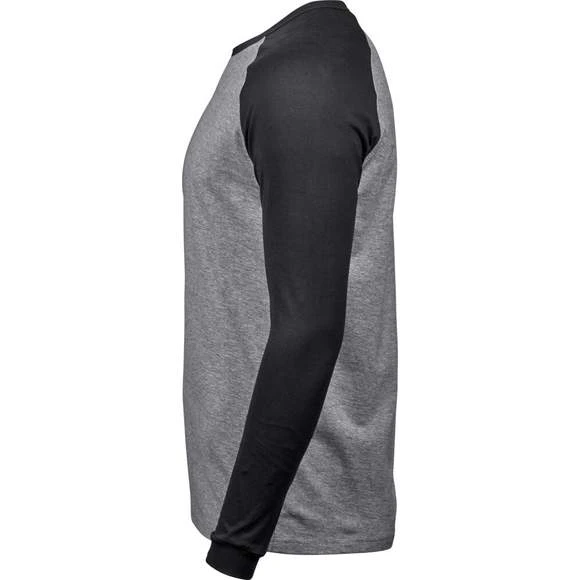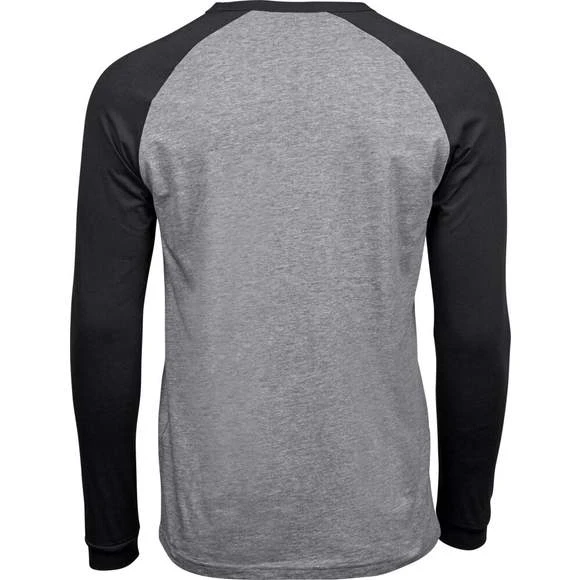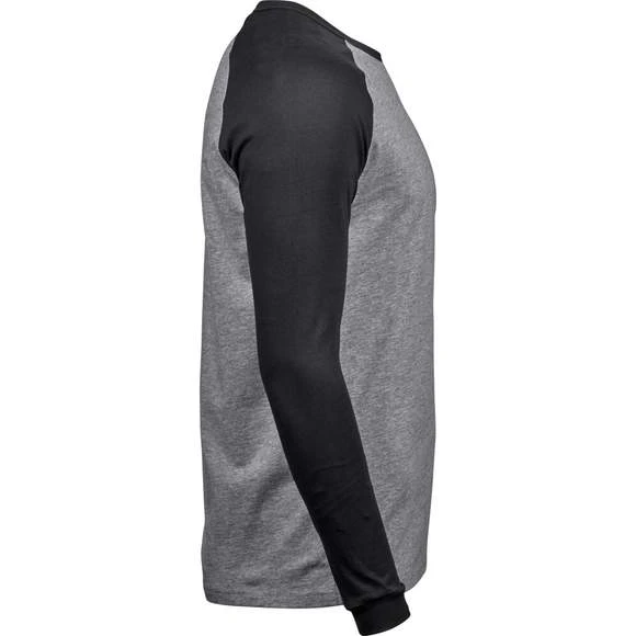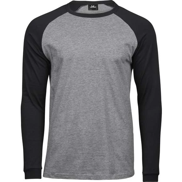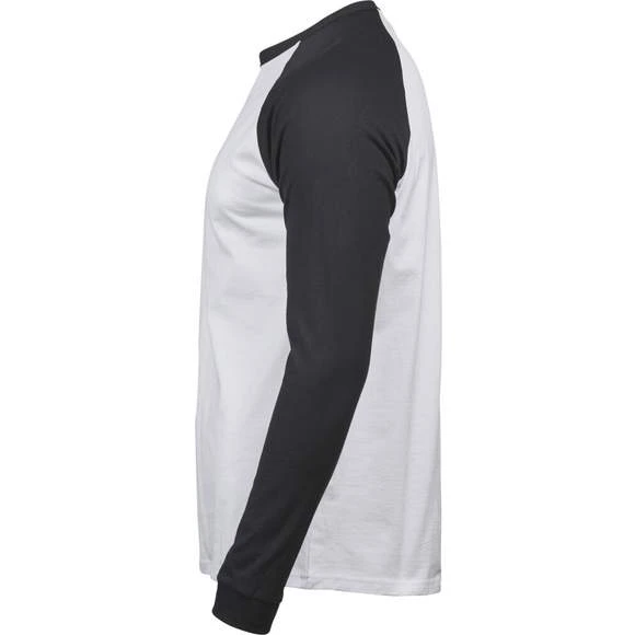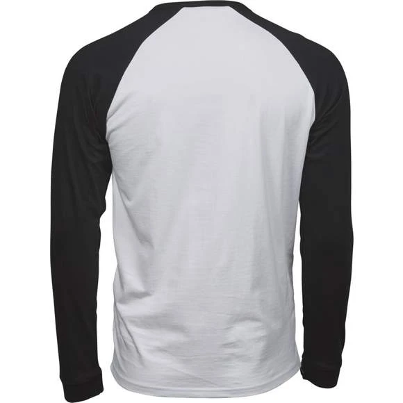 Tee-shirt baseball manches longues. Coupe ajustée. Manches raglan et contrastées. Col en bords côte avec élasthanne. Bande de propreté d’épaule à épaule. Composition : 85% coton, 15% viscose. Sauf coloris WHITE / BLACK : 100% coton peigné Ringspun. Grammage : 185g/m²