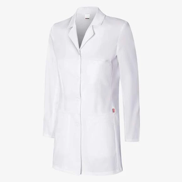 Blouse femme. Fermeture par boutons. Manche de type tailleur. Ouverture dans le dos. Coupe semi-cintrée. Pinces. 3 poches passepoilées. 62% polyester/34% coton/4% élasthanne