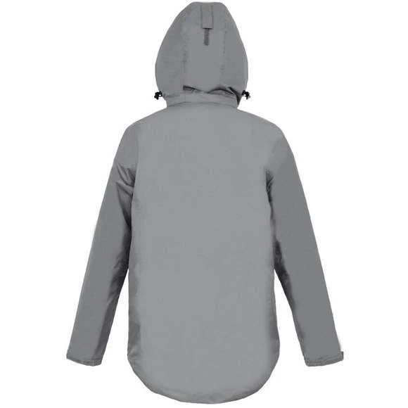 Blouson avec col droit , Zip deux sens à l’avant avec une fermeture par bande auto-agrippante par dessus. Capuche amovible , poche napoleon avec zip , Poignets ajustables via bande auto-agrippante.