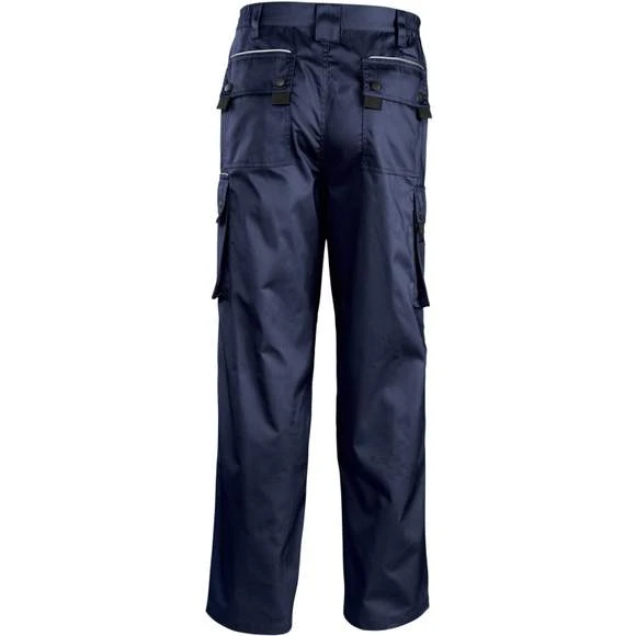 STYLE : – 9 Poches – Rabat de poches avec passepoil réfléchissant – 2 emplacements stylo -Ouverture zip injecté noir – Emplacement pour genouillères amovibles –