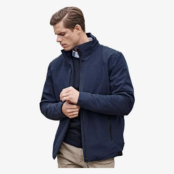 Veste toutes saisons homme. Déperlant. Col haut à la mode. 2 poches avant spacieuses. Poche intérieure. Longueur moyenne pour un look sportif et moderne. Composition : 88% polyester, 12% élasthanne. Matelassage DuPont™. Grammage : 260g/m²