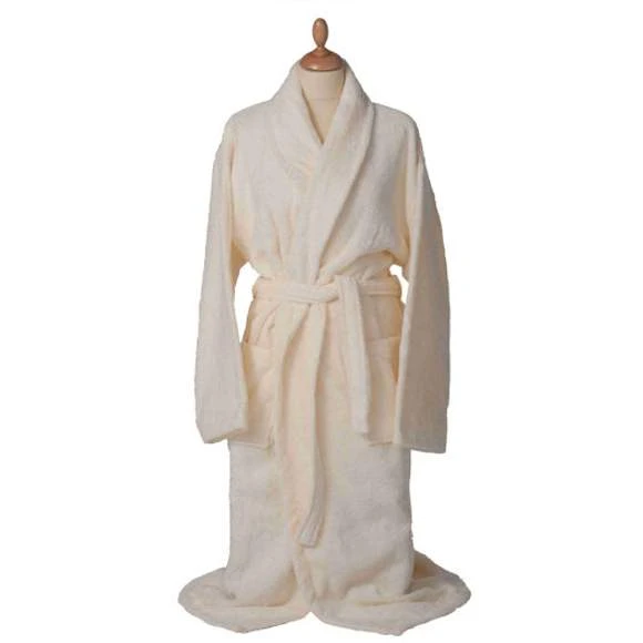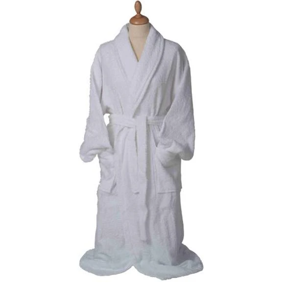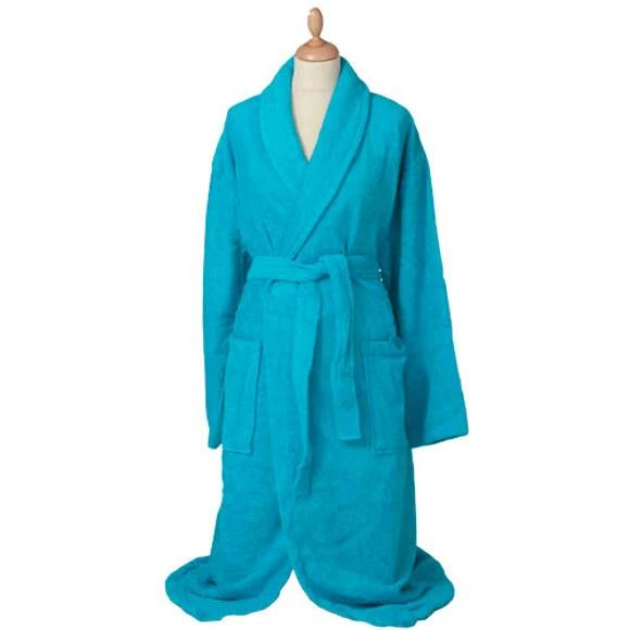 Ce peignoir mixte en coton convient parfaitement à tous ceux qui recherchent une expérience luxueuse et confortable. Fabriqué en 100% coton avec un col châle, ce peignoir est agréable à porter avec son tissu doux et moelleux. Choisissez parmi plusieurs couleurs disponibles. Grammage 385g/m². Pour garantir un ajustement optimal, il est conseillé de commander une taille en dessous de la taille habituelle (les peignoirs taillent relativement grand).