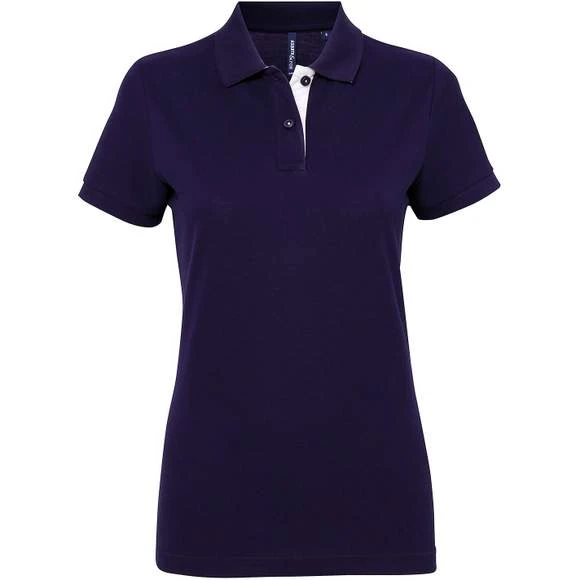 Polo cintré pour femme avec col et patte contrastés. Deux boutons de couleur contrastée sur la patte. Couleur contrastée sur les fentes latérales. Ourlet en coutures à aiguille double. Col et poignets en tricot côtelé. Ce produit n’a pas d’étiquette d’encolure de marque * Étiquettes de vêtement amovibles Kimble ou à boucle. L’étiquette de la couture intérieure contient des informations importantes sur le produit sur une étiquette et une deuxième étiquette contenant des informations sur la marque qui peut être découpée. *Veuillez noter que les anciens stocks peuvent contenir une étiquette de marque non amovible. Certifié WRAP. Certifié BSCI. Certifié SEDEX. Composition : 100% Coton peigné à fil de chaîne continu (ringspun). Heather/Navy: 85% Coton, 15% Viscose. Charcoal: 60% Coton, 40% Polyester. Grammage : 200g/m²