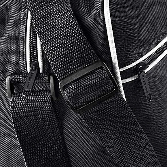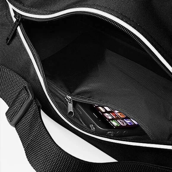 Polyester 600D. Bandoulière ajustable. Poche intérieure zippée. Poche avant zippée. 18 litres.