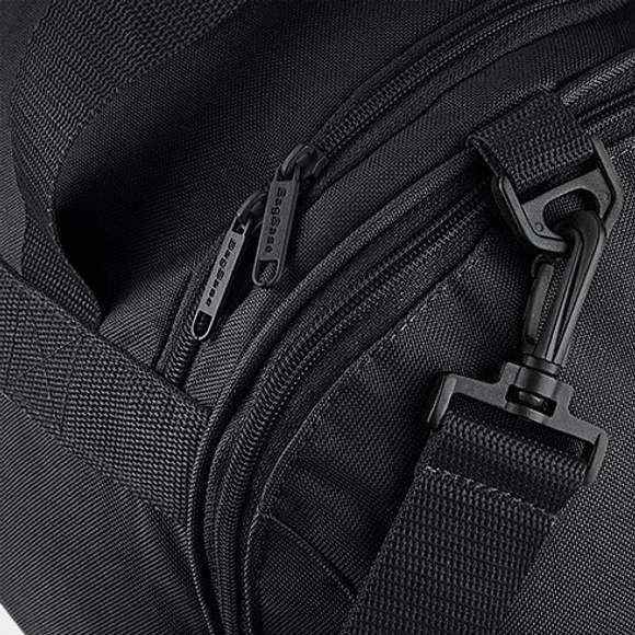 Bandouillère amovible ajustable rembourrĂ©e au niveau de l’Ă©paule. Poches zippĂ©es sur les cĂ´tĂ©s.