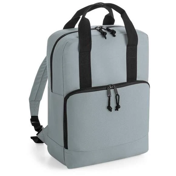 Sac à dos isotherme. Doublure PEVA – Sans PVC et sans BPA. Poche avant zippée avec section organisateur. Compartiment principal entièrement isolé. Tirettes zippées en cordon avec détails réfléchissants. Bretelles rembourrées réglables. Poignées de transport en sangle. Capacité : 16 litres. Dimensions : 40 x 30 x 14 cm. Étiquette TearAway. Composition : 100% polyester recyclé (600D).