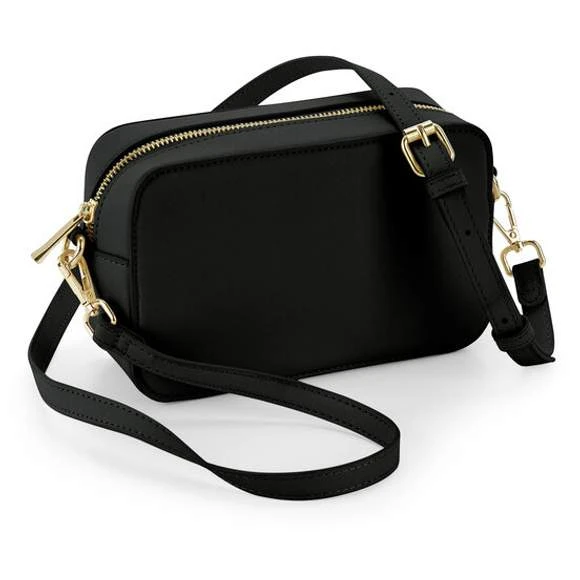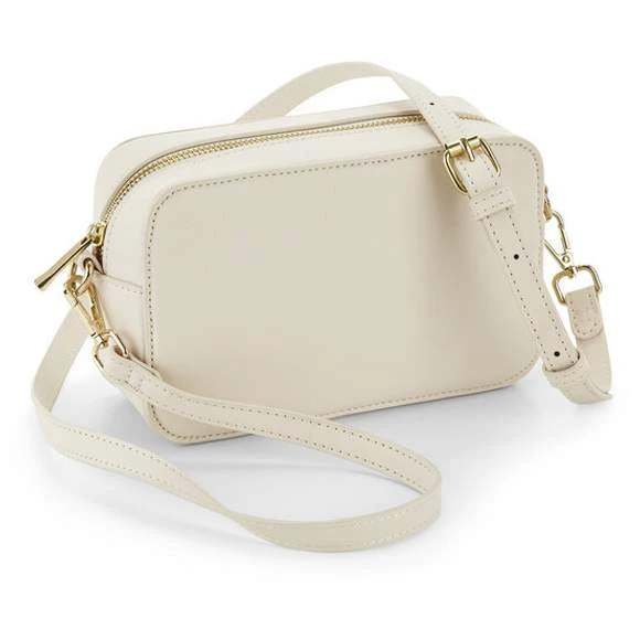Sac à bandoulière, imitation cuir grain fin Saffiano. Doublure douce au toucher. Bandoulière réglable amovible. Détails en métal doré brillant. Compartiment principal avec fermeture à glissière. Poche intérieure avec fermeture à glissière pour objets de valeur. Étiquette détachable pour faciliter le changement de marque. Compatible avec BG765. Capacité : 1,5 litre. Dimensions : 21 x 13 x 7cm. Composition : 100% polyuréthane (aspect cuir).