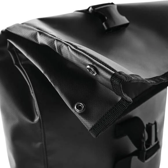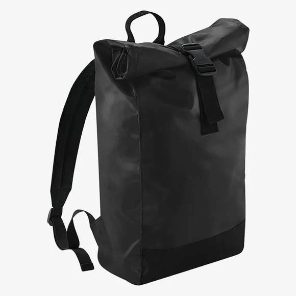 Sac à dos en bâche avec fermeture par rouleau. Bretelles réglables rembourrées. Poignée au dessus du sac et poche de rangement dissimulée à l’intérieur. Étiquette TearAway, facile à ré-étiqueter. Capacité : 15 litres. Dimensions: 26 x 43 x 13 cm. Composition : 100% chlorure de polyvinyle (bâche PVC).