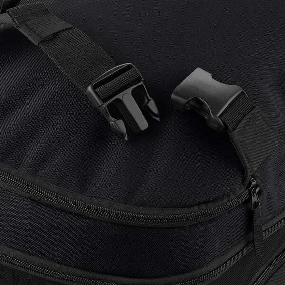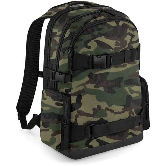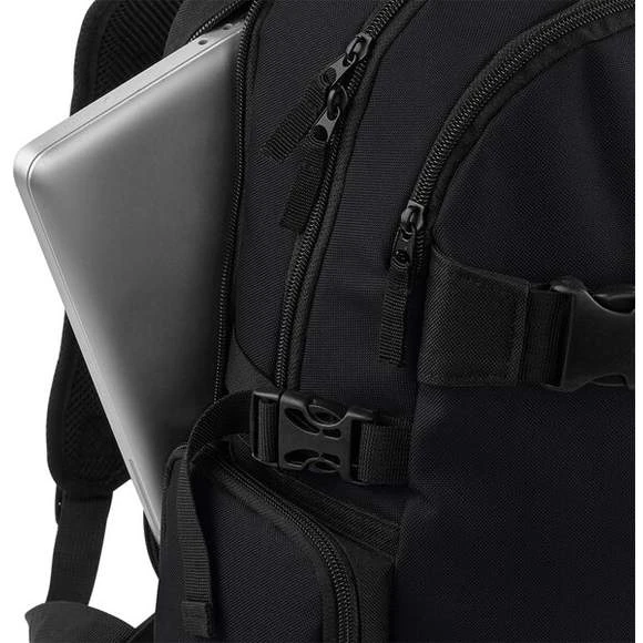 Sac à dos avec poignée et bretelles réglables rembourrées. Panneau arrière rembourré. Sangles de compression et sangles de transport pour planche à roulettes. Compartiment pour ordinateur portable avec accès externe pour laptops jusqu’à 17 pouces. Poche pour organiser, poche avant zippée et poches latérales. Étiquette TearAway, facile à ré-étiqueter. Capacité : 23 litres. Dimensions : 36 x 46 x 16 cm. Composition : 100% polyester (600D).