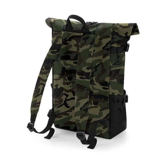 Sac à dos avec rabat enroulable. Bretelles réglables rembourrées. Panneau arrière rembourré et sangles de compression. Compartiment rembourré pour ordinateur portable, compatible jusqu’à 17 pouces. Poches latérales faciles d’accès et poche intérieure zippée. Étiquette TearAway. Capacité : 22 litres. Dimensions : 28 x 48 x 15 cm. Composition : 100% polyester (600D).