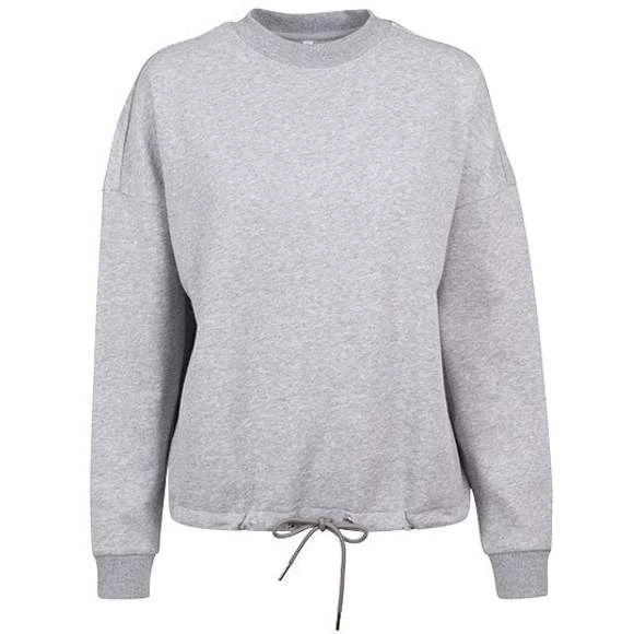 Sweat-shirt. Étiquette de taille sans marque. Epaule étendue. Bande de propreté. Poignets, emmanchures et encolure côtelés. Emplacement de cordon avec œillets en métal à l’ourlet. Demi-lune dans la nuque. Coupe oversize. Manches longues. Composition : 65% coton / 35% polyester Grammage : 250g/m²