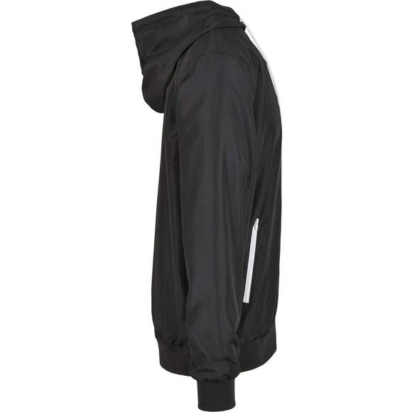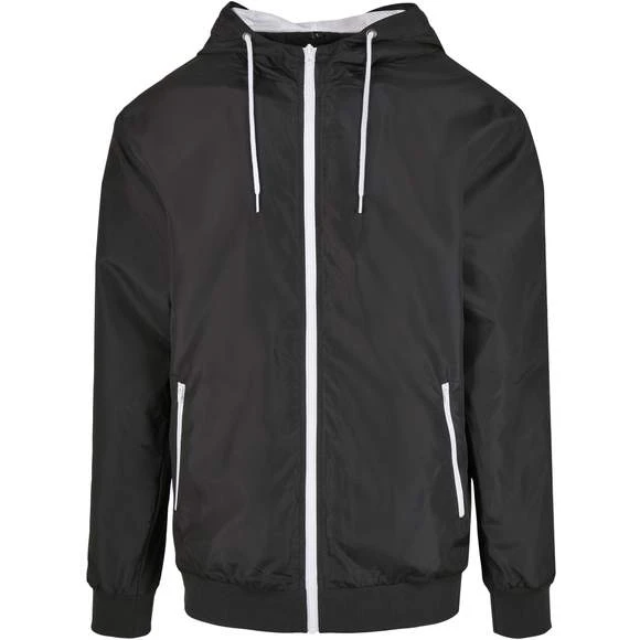 Veste coupe vent. Doublure en maille et capuche. LiserĂ© cĂ´telĂ© Ă l’ourlet et Ă l’intĂ©rieur des manches. Coupe standard. Fermeture Ă©clair. Composition : 63 % polyester, 37 % polyester recyclĂ©. Grammage : 82g/m²