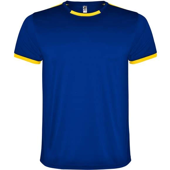 Kit de sport unisex composé de 2 t-shirts + 1 short. Manches courtes avec liseré large en contraste. La couleur du deuxième t-shirt est l´inverse du premier. Col rond avec liseré bi-couleur et bande de propreté renforcée à l´intérieur. Pantalon avec ceinture élastique avec cordon intérieur de la même tonalité et point arrière de sécurité. Kit sans chaussette. Étiquette détachable. Spécial sublimation. Composition : 100% polyester. Grammage : 140g/m²