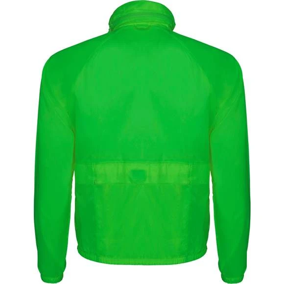 Veste coupe-vent en tissu technique. Col avec fermeture éclair pour garder la capuche. Tissu respirant au niveau de l´emmanchure. Manches raglan. Double poche sur le devant avec fermeture éclair. Ouverture et fermeture avec crémaillère. Poche arrière pour ranger le vêtement à mode de sac. Bas de veste et poignets de manches avec élastique. Bride située en haut du dos dans la zone du cou pour accrocher l´article. Capuche avec élastique et embouts ajustables. Tissu respirant a l´intérieur du cou. Tissu respirant dans la poche intérieur du dos. Étiquette détachable. Modèle résistant à l´eau. Modèle coupe-vent. Modèle respirant. Composition : 100% polyester. Grammage : 50g/m²
