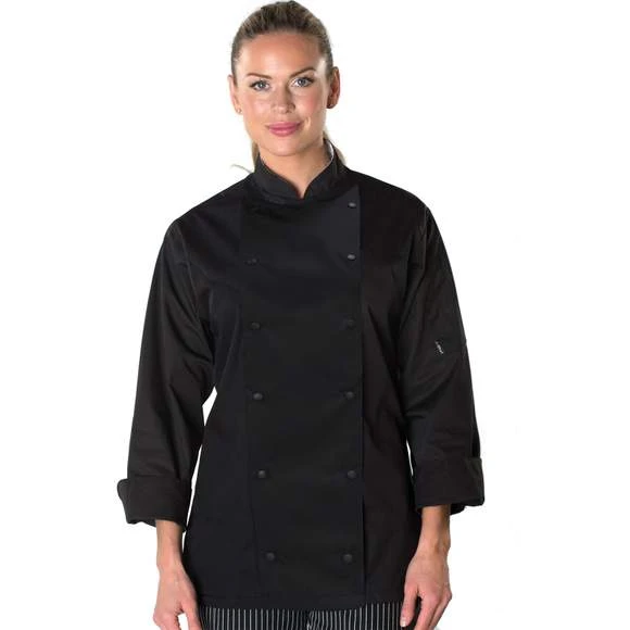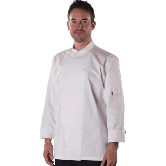 Veste de cuisinier. Unisexe. 2 rangées de 6 boutons. Doublure et aisselle avec système « Staycool ». Composition : 50% Polyester / 50% Coton.