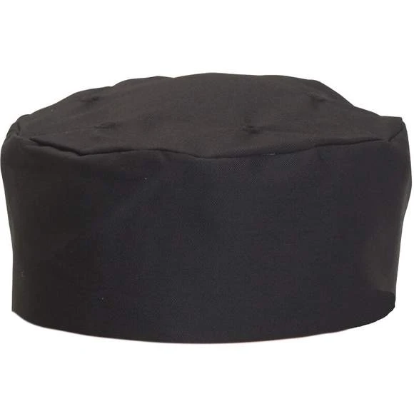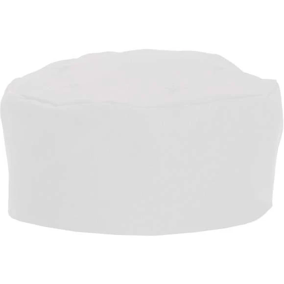 Toque de cuisinier, Ovale pour une meilleure mise en place. Elastiquée à l’arrière. M (56cm-58cm), L (61cm-63cm). Composition : 65% polyester, 35% coton.
