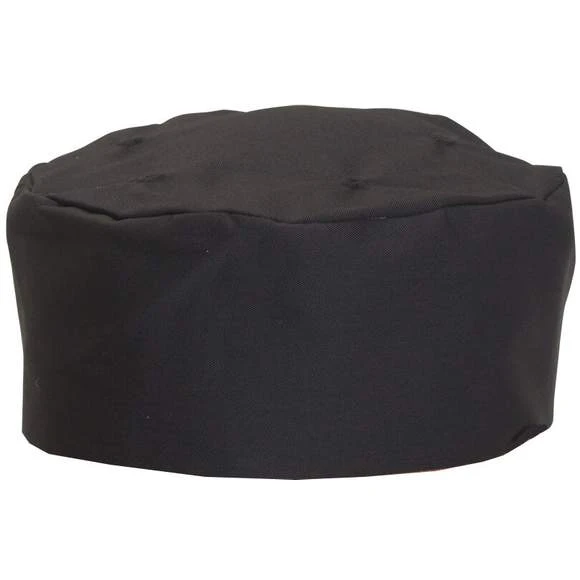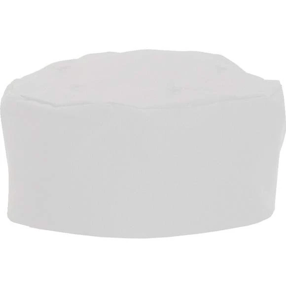 Toque de cuisinier système Staycool. Ovale pour une meilleure mise en place. Elastiquée à l’arrière. M (56cm-58cm), L (61cm-63cm). Lavable à 65°C. Composition : 65% polyester, 35% coton.