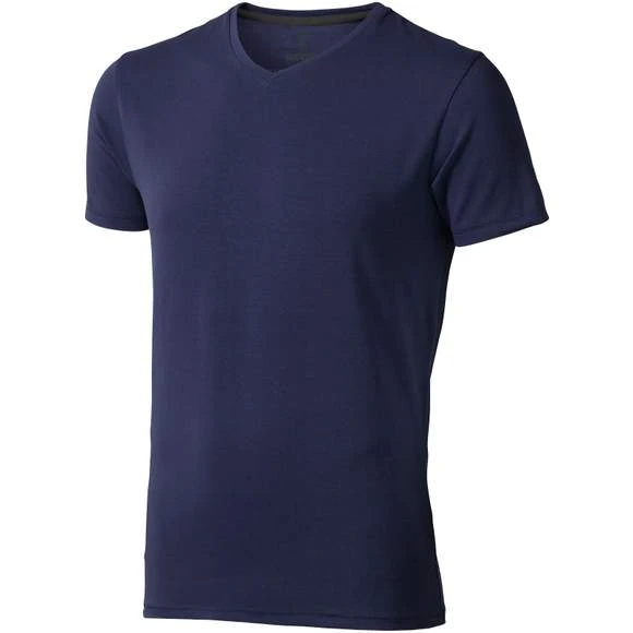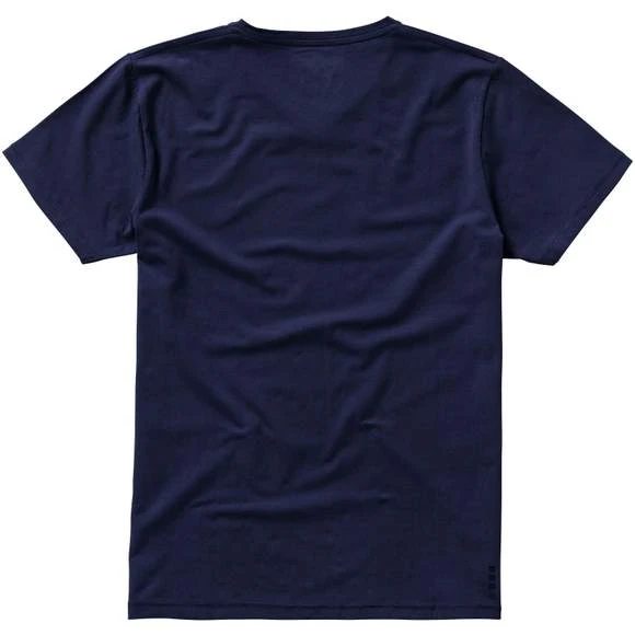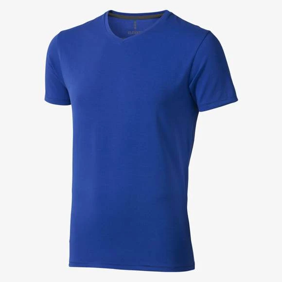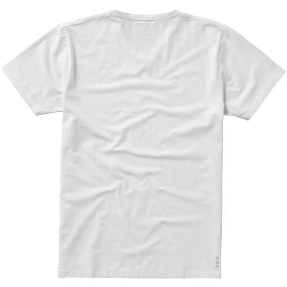 T-shirt bio manches courtes pour hommes. Col de même tissu. Col V. Tissu extensible. Points verticaux. Bande en satin d’épaule à épaule. Étiquette principale en transfert pour un meilleur confort. Jersey simple 95% coton biologique ringspun et 5% élasthanne. Grammage : 200g/m²