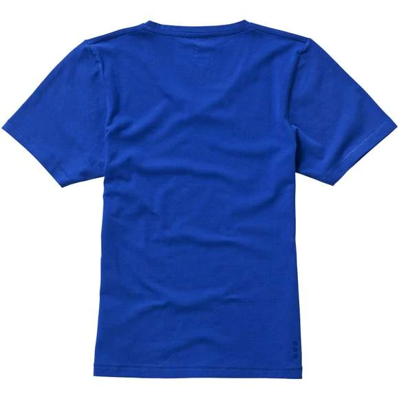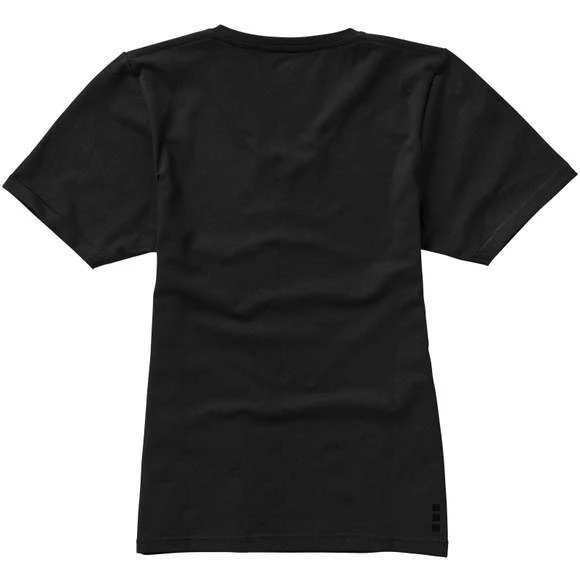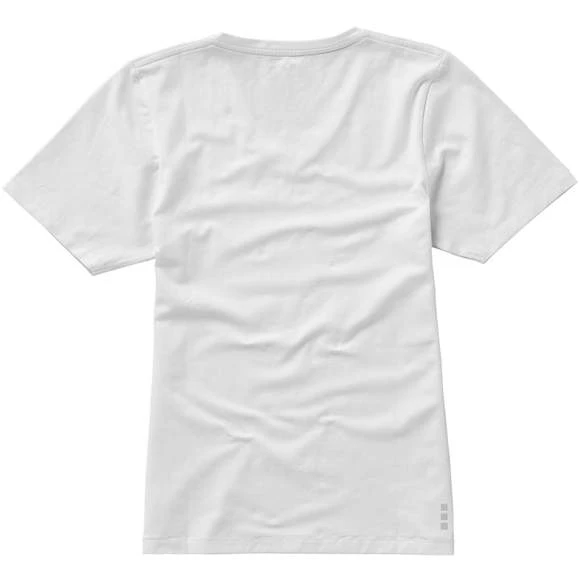T-shirt bio manches courtes pour femmes. Col de même tissu. Col V. Tissu extensible. Points verticaux. Bande en satin d’épaule à épaule. Étiquette principale en transfert pour un meilleur confort. Jersey simple 95% coton biologique ringspun et 5% élasthanne. Grammage : 200g/m²